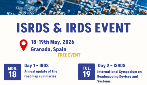 La riunione periodica di IRDS e ISRDS si svolgerà a Granada il 18-19 Maggio 2026. Il 18 Maggio ci sarà la riunione dell’IRDS con l’analisi delle sfide e delle possibili soluzioni nel campo dei materiali, dispositivi e sistemi elettronici per i prossimi 15 anni. Il 19 Maggio, l’ISRDS si focalizzerà sulle nuove tecnologie di calcolo, inclusi Neuromorphic e Quantum Computing, e su dispositivi e materiali innovativi. La partecipazione è libera, ma richiede la pre-iscrizione. Per dettagli e pre-iscrizione |